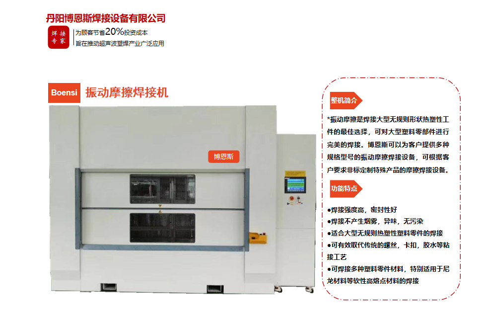 丹陽(yáng)博恩斯焊接設(shè)備有限公司是塑料焊接領(lǐng)域集研發(fā)設(shè)計(jì)、生產(chǎn)制造、銷(xiāo)售服務(wù)為一體的企業(yè)。公司自成立以來(lái)堅(jiān)持“以人為本”的理念,組織了一支強(qiáng)大的技術(shù)研發(fā)團(tuán)隊(duì),攜多年來(lái)積累的豐富經(jīng)驗(yàn),并結(jié)合國(guó)際先進(jìn)塑料焊接技術(shù),根據(jù)市場(chǎng)需要,不斷開(kāi)發(fā)具有核心競(jìng)爭(zhēng)力的新產(chǎn)品。公司具有很強(qiáng)的非標(biāo)機(jī)械研發(fā)、設(shè)計(jì)、生產(chǎn)能力,可為廣大客戶(hù)定制各類(lèi)專(zhuān)用機(jī)械設(shè)備。公司設(shè)計(jì)生產(chǎn)的塑料焊接設(shè)備已廣泛應(yīng)用于汽車(chē)、電子、家電、醫(yī)療器械、無(wú)紡布...